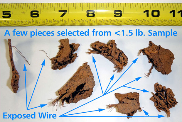 per lb. from the steel-belted radial tires they're made from, and not properly screened. This photo shows pieces from a sample of less than 1-1/2 lbs. of playground product